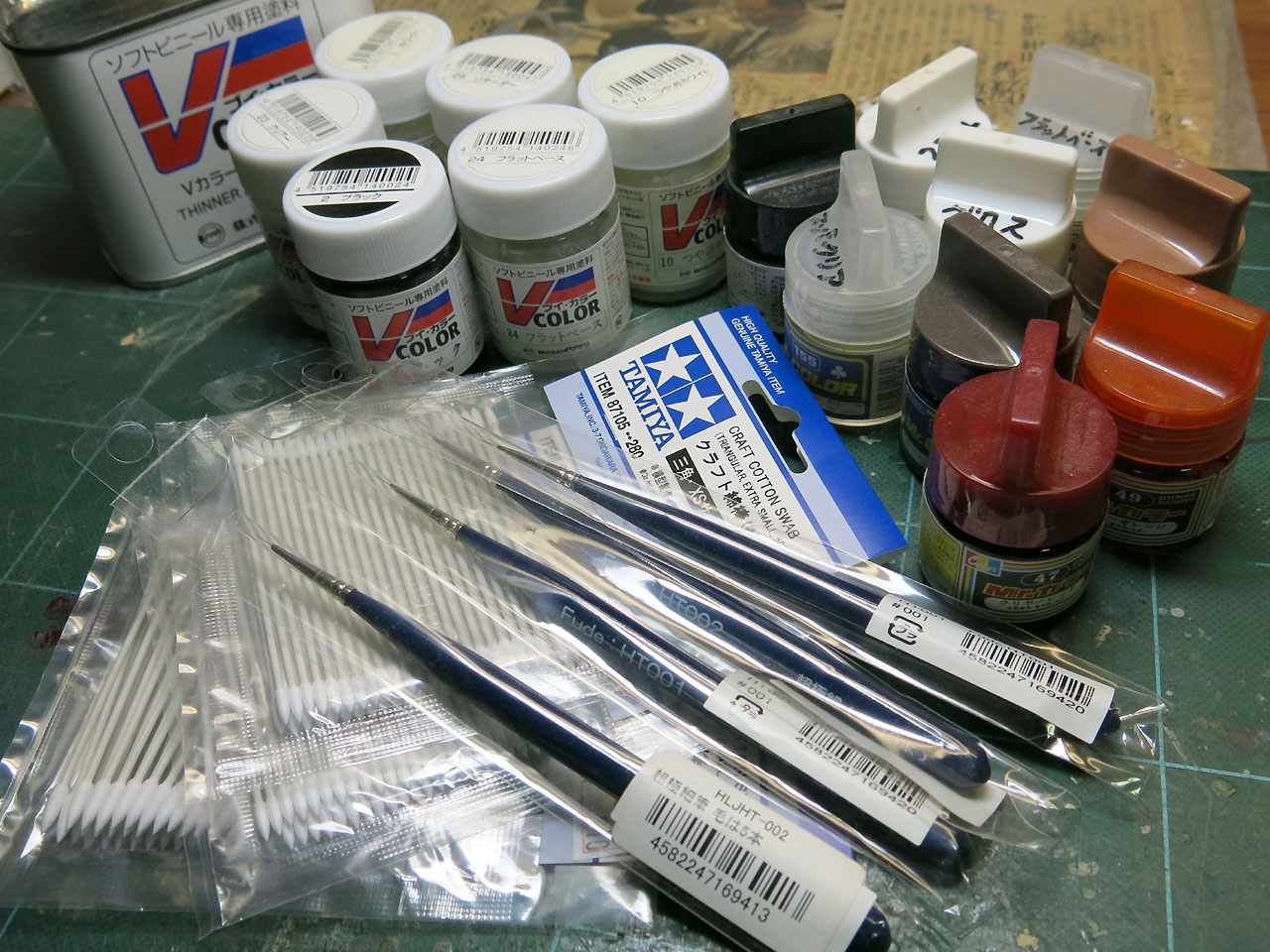 ここまできたらいよいよ眉毛やまつ毛、唇に彩色していきます。ドールカスタムの先輩方はアクリル絵の具派とラッカー塗料派に分かれるようですがワタシは使い慣れたラッカーとソフビ専用塗料の併用で試してみます。今回、極細の面相筆が欲しくて探してみたらスゴいヤツがありました。ホビーリンクの「超極細筆」。コレ、なんと毛先が10本と5本!繊細過ぎて扱いきれるか心配ですが試してみましょう。