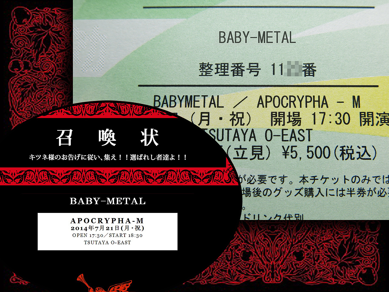 もちろん、コレも外せないのですぐにオーダー。後日抽選に当たってスタンド席を無事に確保。5月だけでライブチケット4枚、約4万円・・・使いすぎか?と思ってたらその月末、BABYMETALウェブ会員限定イベント2DAYSをO-EASTで開催だって!えぇ~いっ、コイツもポチッとっ!!で。コレの初日、6/23分が当たってチケットGET。ファミマで発券。