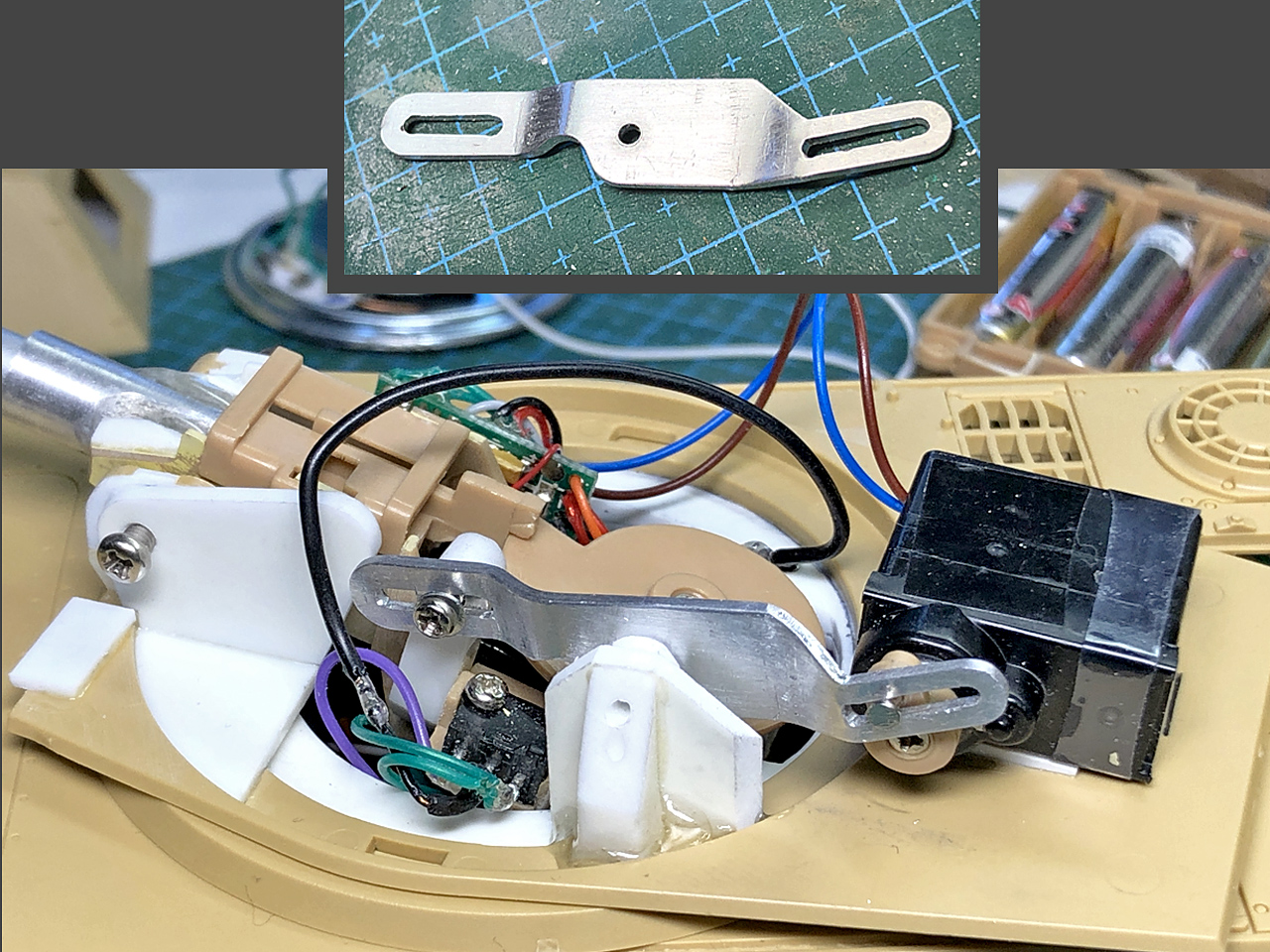 さらに砲身を上下させる動きを移植しますが、スペースが無さ過ぎてオリジナル通りの仕掛けは再現できません。