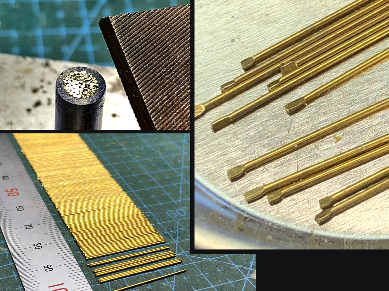 切り出した真鍮線をピッタリ長さ23mmの樹脂パイプに詰めて、両端をヤスリでキレイに仕上げます。