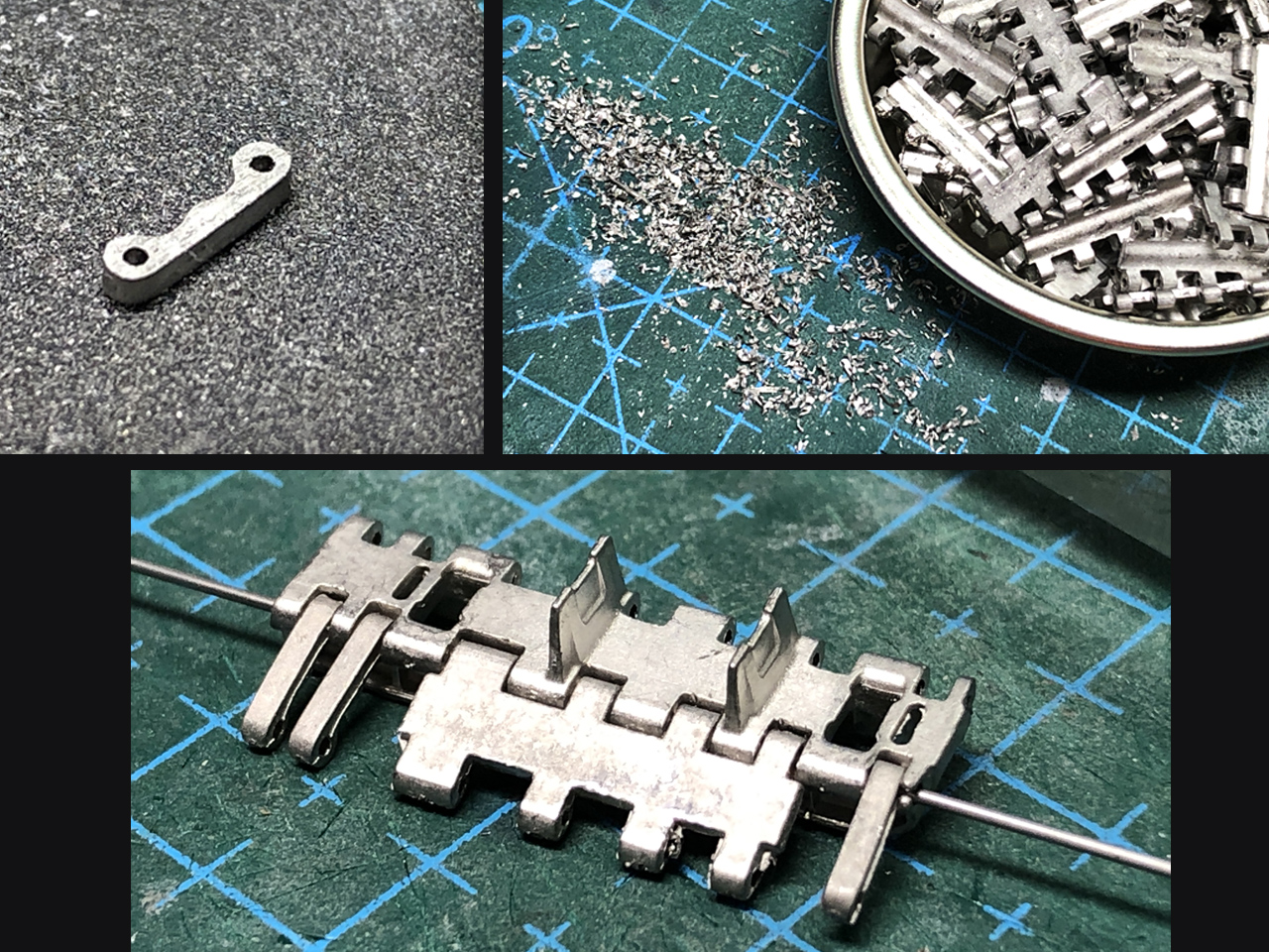これでラジコン化のための工作はひと通り終了なので、今回一番の見せ場の「金属可動履帯」の組み立てを始めます。
