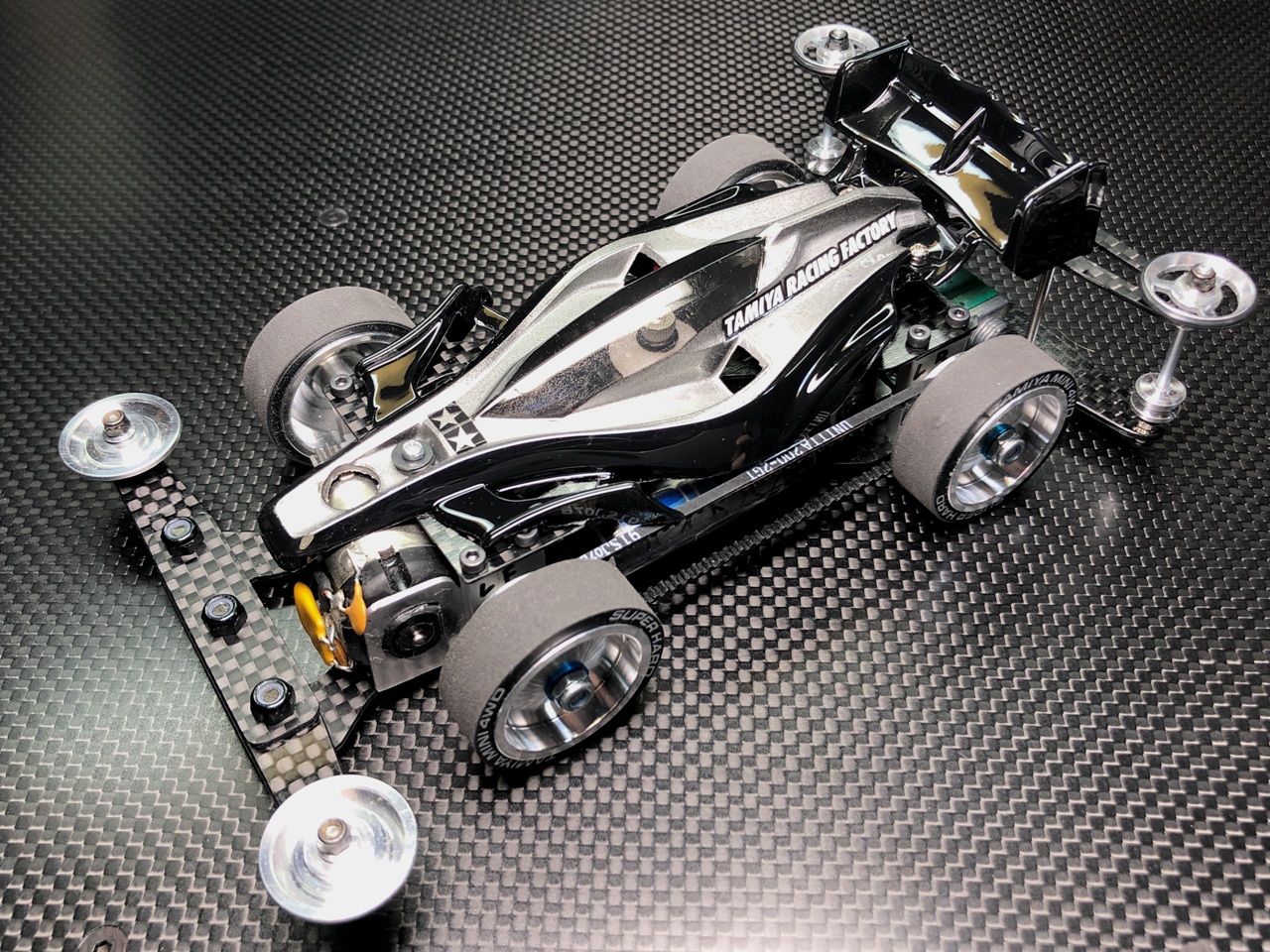 アバンテと言えば鮮やかなブルーのイメージなんですが。買っておいたつもりのメタリックブルーが見つからないので、さっさとブラックで塗ってしまいました。さらに、シルバーの部分はクレオスの「メッキシルバーネクスト」でメッキ調にしたかったんですが。黒を裏打ちしたとたんに鈍く沈んでしまいました。でもこれでようやく完成。あとはコースを走りながらセッティングです。ってか、ここからが大変そう・・・。