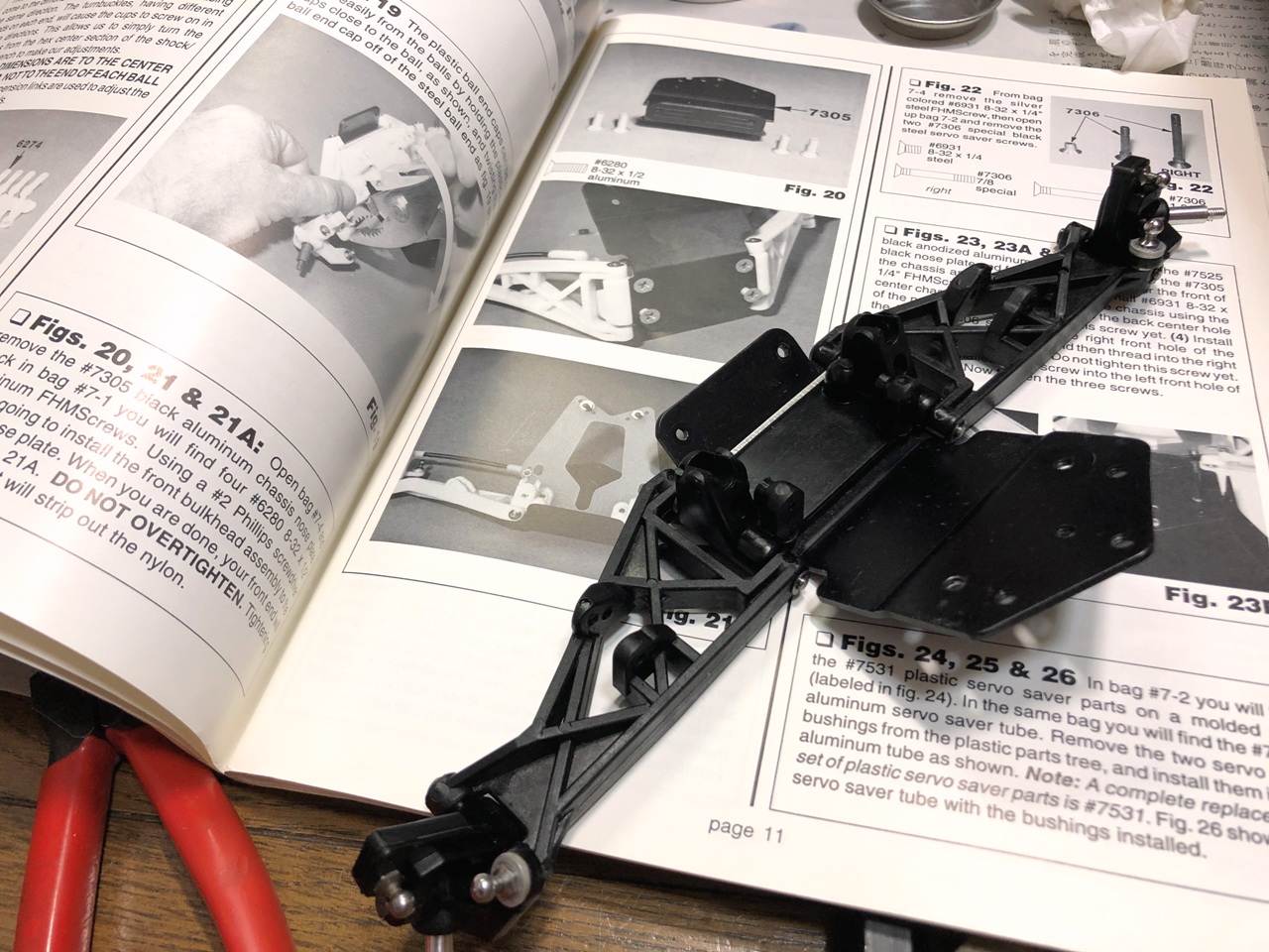 準備できたので再度組み立てていきます。組み立て説明書に従って順番通りに進めていきます。写真を見ながらパーツをひとつづつ確認して組み立てていくこの作業、新車のキットを買った時のワクワクをちょっとだけ味わえます♪