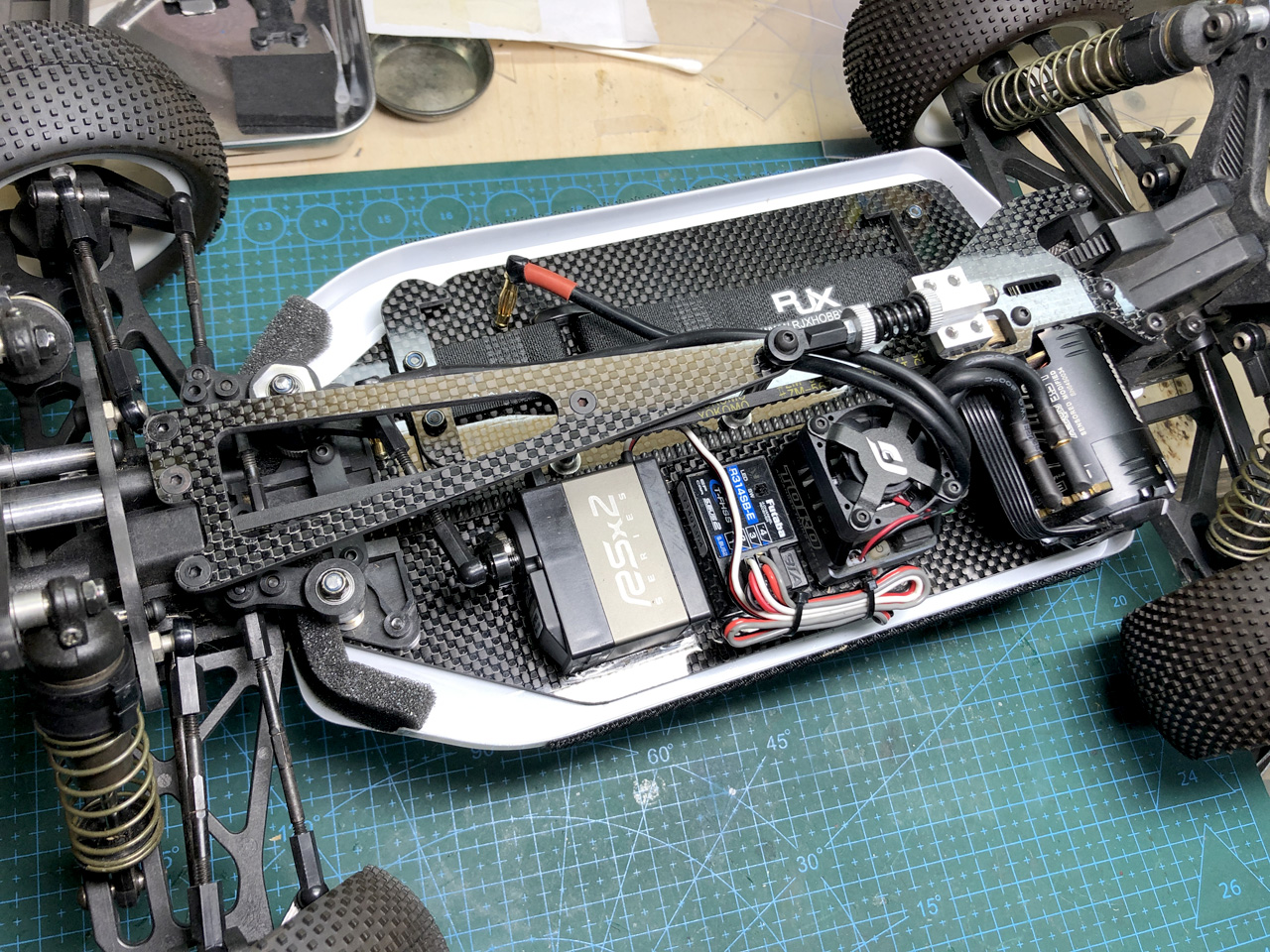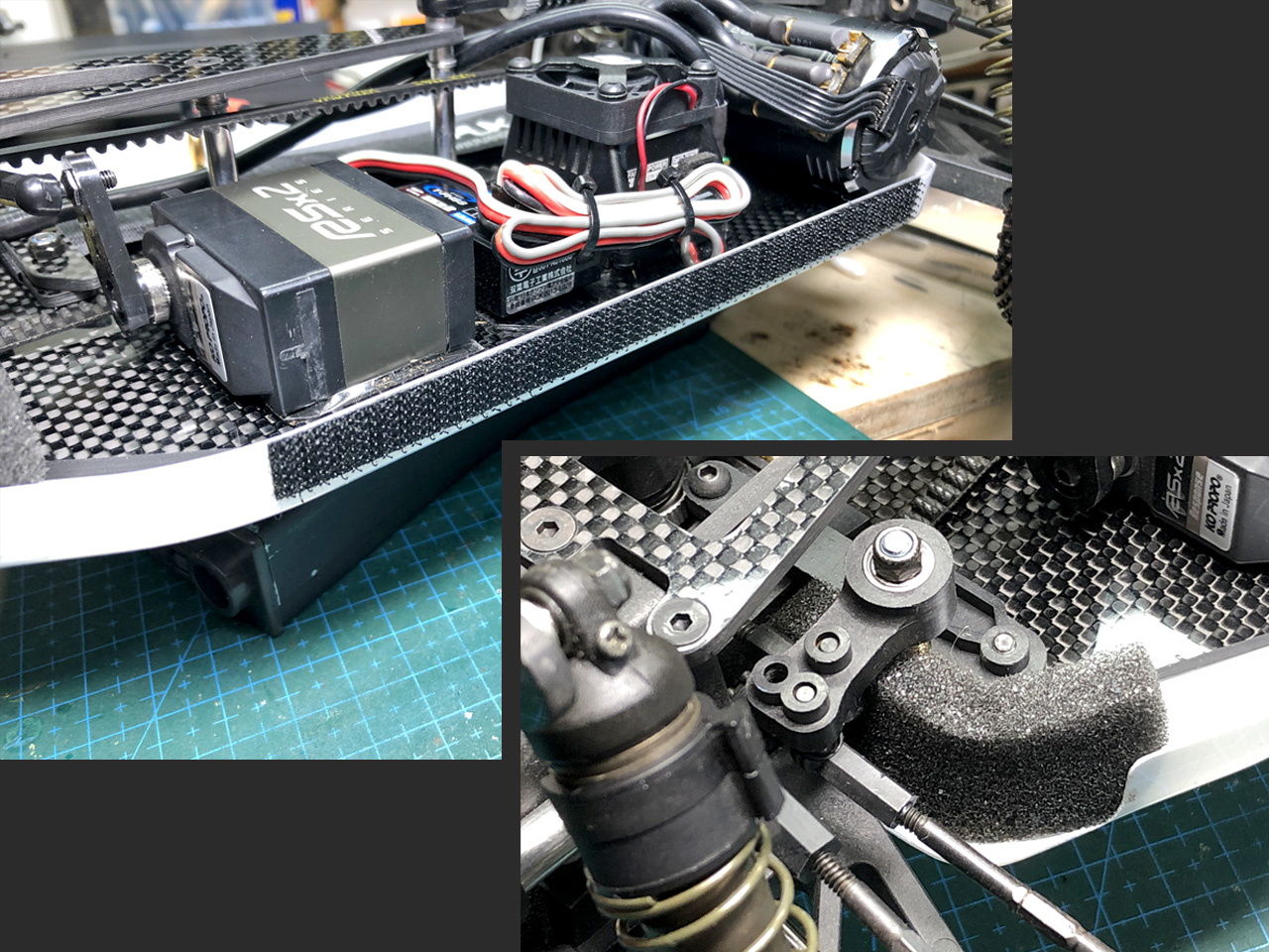 ボディー固定用のマジックテープは長めに貼って、前輪が跳ね上げた小石をブロックします。