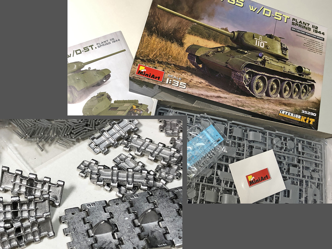 らにロシアの痛快戦車映画「T-34 レジェンドオブウォー」の影響で、昔から好きだったT-34/85のフルインテリア付きプラモ(ミニアート製)と同じくマスタークラブの金属製キャタピラをゲット。