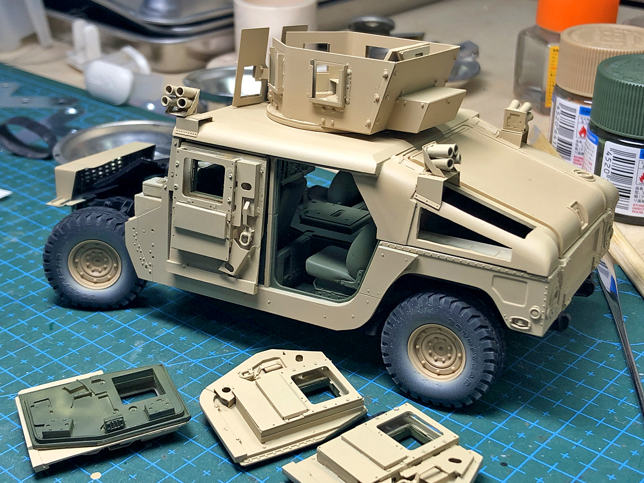 車体を塗装するまで組まずにいた防弾ガラス(透明プラバン)がようやく取り付けられると思ったんですが。