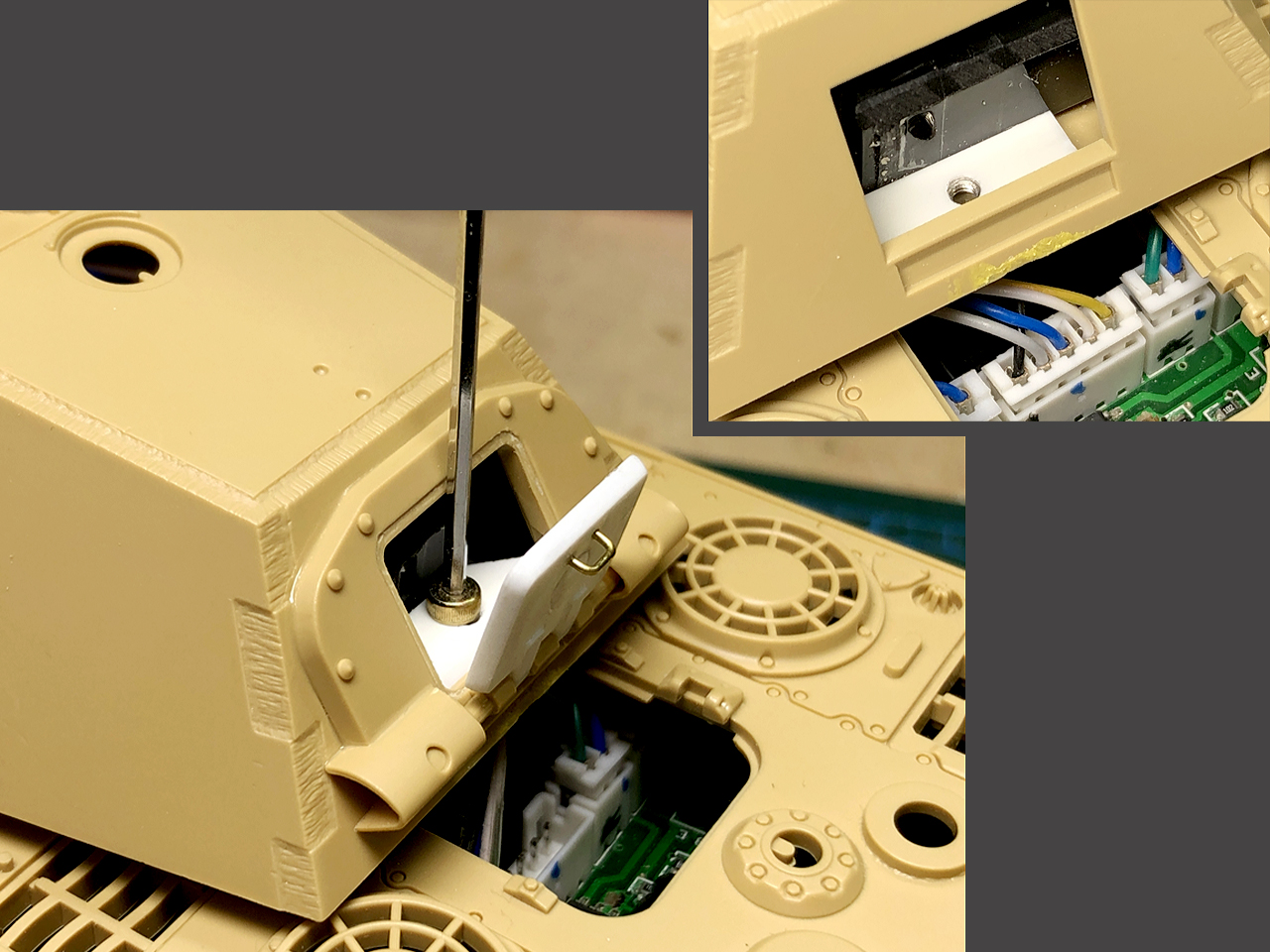 砲塔後部の「脱出用ハッチ」を使って固定ネジにアクセス出来る様にします。