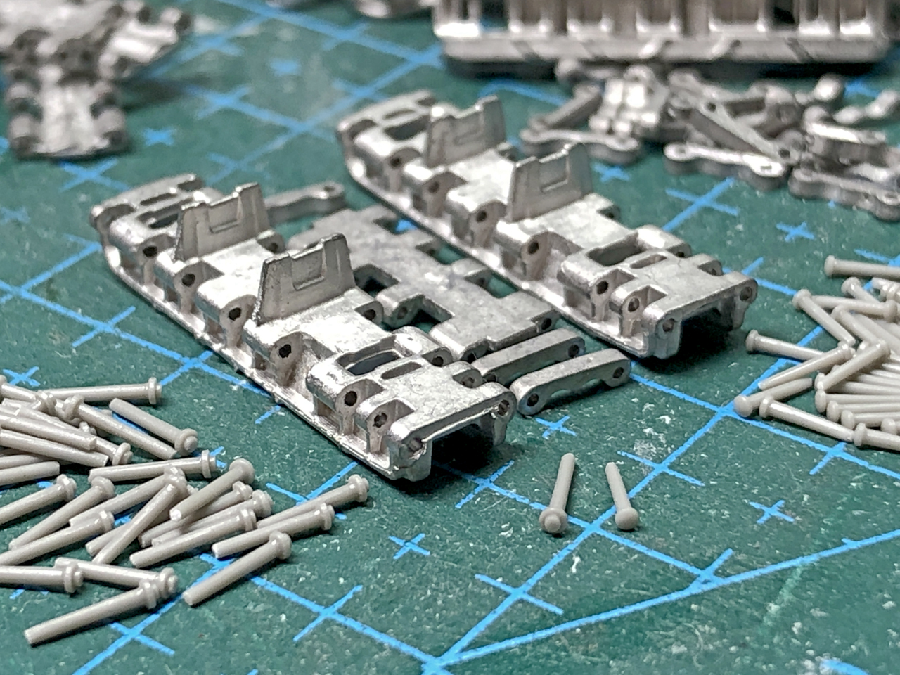 このマスタークラブの金属履帯、連結ピンの両端はボルト形状が再現された精密な樹脂パーツが付属します。(内側はピンヘッド形状)