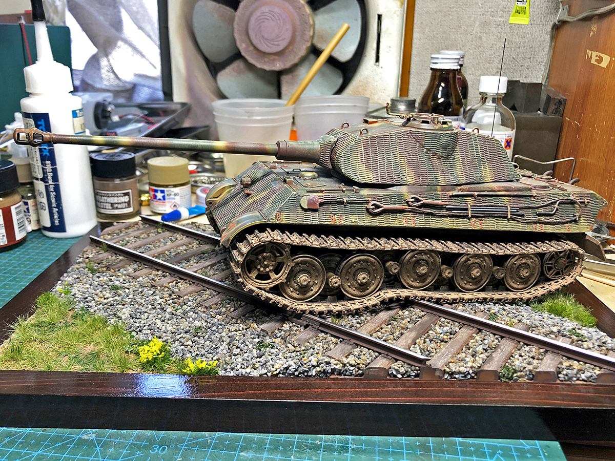 戦車自体が全体に「茶色」なので、ベースには緑や黄色を入れてみたんですが。