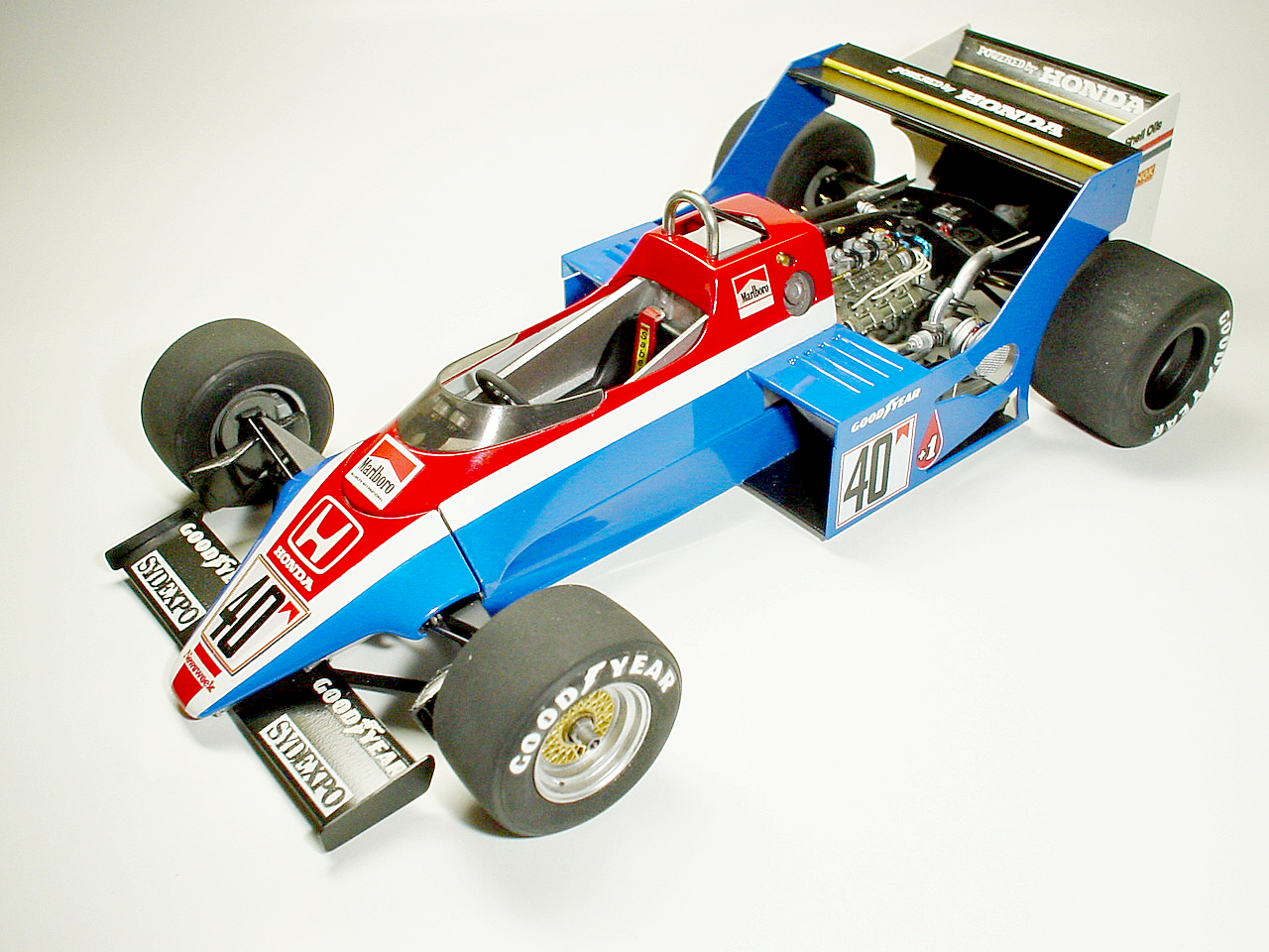 で、せっかく自作するエンジン周りがよく見える事やサイドポンツーンから延びるフォワードウィングがゴツくてカッコいい(?)ことから今回は83年ブランズハッチ開催の「ヨーロッパGP」仕様に決定しました。同時にこのシーズンのライバル達も研究して、当時のバランスや曲面のトレンドなんかも表現していきます。模型で大事なのは「雰囲気」ですから♪。それともうひとつ、自分が「欲しい」モデルを選ぶ事。ってか、これが一番大事でしょう! 完成品を机に置いてニヤニヤ眺めてるところを想像してヤル気出しましょう(笑)。