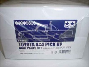 東武デパートのタミヤフェアでGETしました。目の前に30個ぐらい積んであるのにひとり一個だって・・・。初代のステップサイドを期待してたんですがまあ、ボディーが手に入っただけで十分か・・・。やっぱり80年代西海岸調のメタリック塗装で決めたいですね。ちょっと古臭い感じの(笑)。