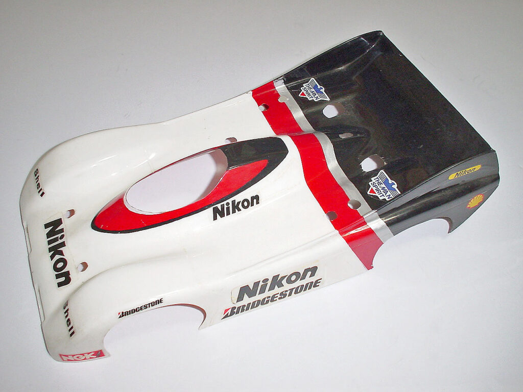 これが装着されていたボディーです。塗装は裏から筆塗りで塗膜はかなり厚めです。ただカラーリングは80年代風でいい感じなので塗り直すにしてもこんな感じにしましょう。