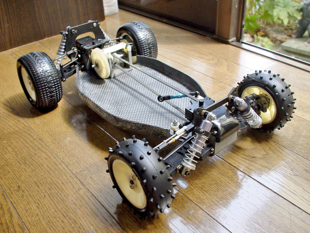 80年代後半、ブームに乗ってワタシの周りでも電動バギー熱はエスカレートの兆しを見せていました。ワタシの当時の愛車は、アキバのジョイプラザ(懐しい!)で買った、あのRCL「インシデント」でした。店長曰く「この車は世界最速だよ!♪」。となりのバイト君が小声で「また言ってるよ」だって。6:4のトルク配分式センターデフ付きのトリプルボールデフ。完全密閉の駆動系。エキセントリック式のキャンバー調整etc・・・。マニア心を掴みまくりです。が、・・・キングピン抜けすぎ、ギアBOXすぐ割れる、パーツ入手困難、メンテナンス性最悪・・・。