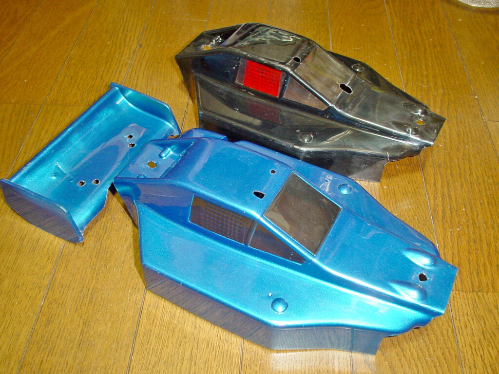 これでスーパードッグ系はボディーにも一生困らずに遊べます♪。 とは言え、まずはせっかく準備した中古ボディーを再塗装しましょう。 80年代風の直線的な塗り分けにするか、いま風のフレアーパターンにするか?迷います。 ただ、スペアーが確保出来たのでかなり気楽に塗装できます♪。