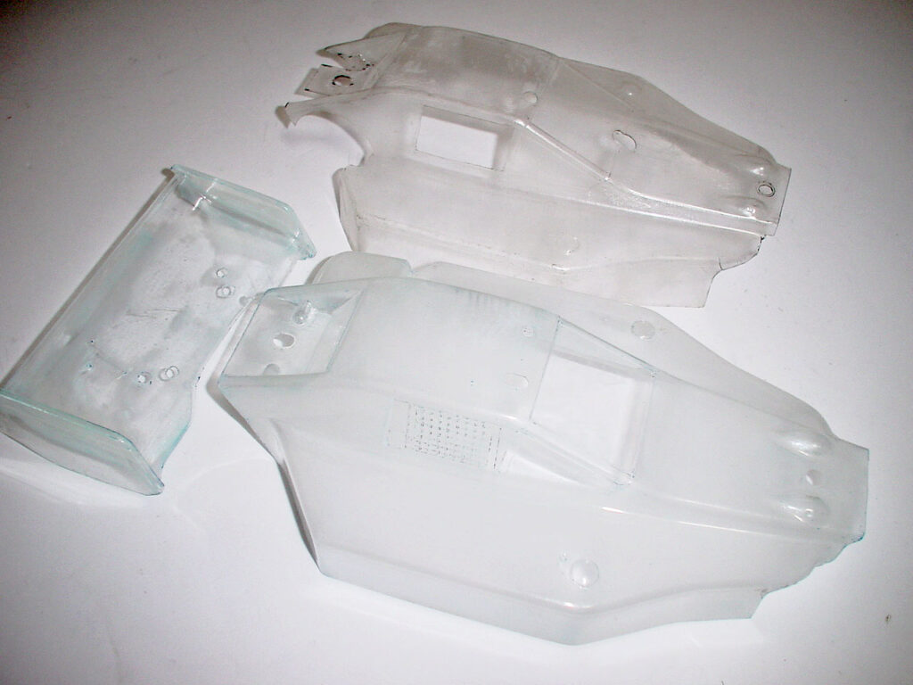 で、とりあえず剥離完了。後ろのは「YR-10GP」に載せるので2スピード部分を大きくカットしてます。 どちらも古い塗膜を完全には除去出来ていないのでカラーリングは元の塗色に近い色味がいいでしょう。・・・数ヵ月後、猛暑のある日。サバゲーの誘いをスッぽかしてネットサーフィンを。 普段あんまり見ない日本橋模型のH/Pで「掘り出し物激安特価」コーナーを見ていてビックリ! 希少品のスーパードッグ系のボディー、アンダーカバーが定価の半額処分に。