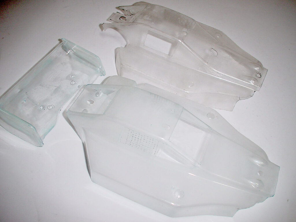 当時からストックしているスペアパーツもまだ随分残ってます。レストア&カスタムしてサーキットに復帰させましょう♪。 そこで、発売当時の「シンプル・合理的」なコンセプトを更に発展させた、アッパーデッキの無いカーボンバスタブ化に挑戦します!。まず樹脂ブロックでシャーシの型を作り、石膏で反転して積層用の雌型にします(かなりテキトーに作ったうえに写真がありません)。 この石膏型に簡単な離型処理をして、カーボンクロスをじかに張り込んでいきます。