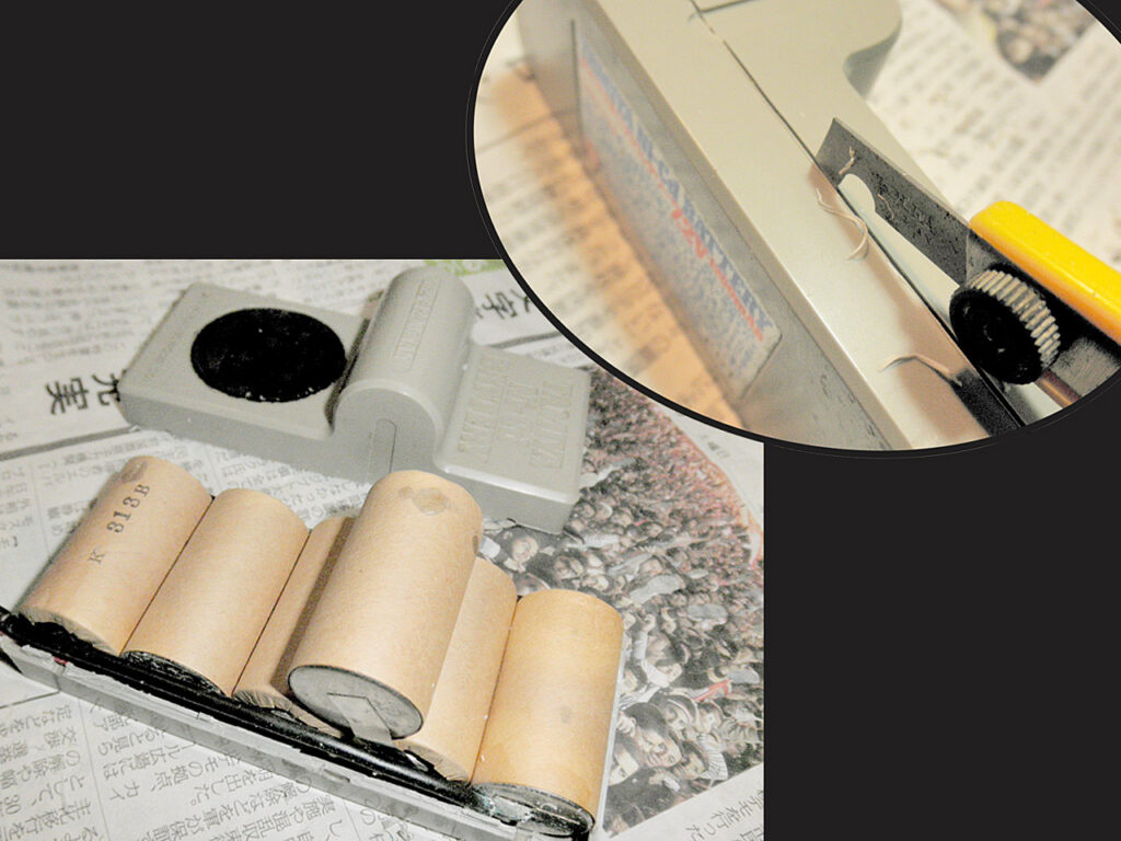 まずケースの内側にあるセルの位置決め用リブを全て取り除きます。次に下側ケースの側面にABS板でフランジを立てて上下ケースがピッタリはまる様にします。コレにリポバッテリーを収めてフタをするとこうなります。バランス充電用のコネクターを収納するスペースもあるので見た目をスッキリできます。このバッテリー、当時のケース容積より更に一回り小さい寸法なのに2,200mA。30年間の技術の進歩を実感します。このインチキラクダ、旧車あそびで気分を盛り上げてくれる事間違いなし!♪