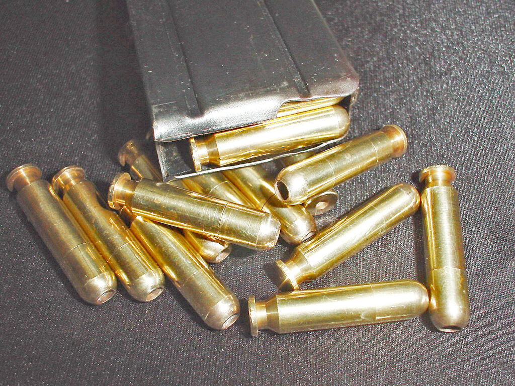 「液」から取り出し水洗い乾燥後、磨きます。こんなにキレイになりました♪。マガジンにも入れてみます。カートは14個あるのですが全部入れるとキツイです。装弾数は? ・・・知りません。