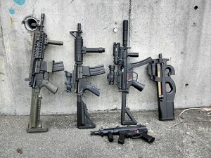 東京マルイ製をはじめ、電動ガンはラインナップが豊富で様々なモデルを選べます。写真は全て電動ガンのカスタムです。P-90は昔トイテックのガスガンを買い逃してからずっと欲しかったので、マルイから発売されたものをすぐに購入しました。コイツはマガジンの給弾性を除いて、電動トイガンとしての完成度が非常に高いです。MP5Kクルツ系は小型軽量なので結局ゲームではコレばっかりになってしまいます。 が。やっぱりワタシは左の「M4/16系」が好きなのでモデルガンを含めてコレの数が増えてしまいます♪