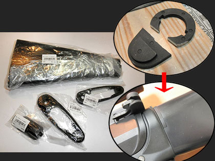 また、レールへの固定用ビスがハンパに長く、畳んだ足に干渉するのでスペーサーを挟んで調整します。マウントベース部分と本体は、左右の傾斜と首振りが出来るように可動式の接続になっています。が、足を畳むとここがカタカタ動いてチャチいので位置決め用に、2本の足の間に挟まるようにグリップを装着します。