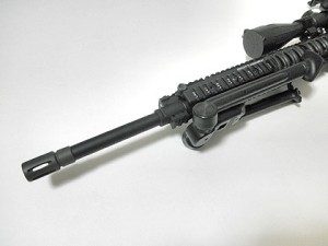 が・・・。トリガーストッパー(セイフティーレバー)の戻りがイマイチ悪く、たまにトリガーがロックしてしまいます。なんかスッキリしないのでもう一度バラしてチェック。レバーのリターンスプリング先端がメカボの内壁に当たって、動きを妨げているのが原因のようです。ラジオペンチを使って、コレをメカボと干渉しない形状に修正します。これでようやく、(スコープ以外は)イメージ通りに完成しました。う~んっ♪、カッコえぇ?